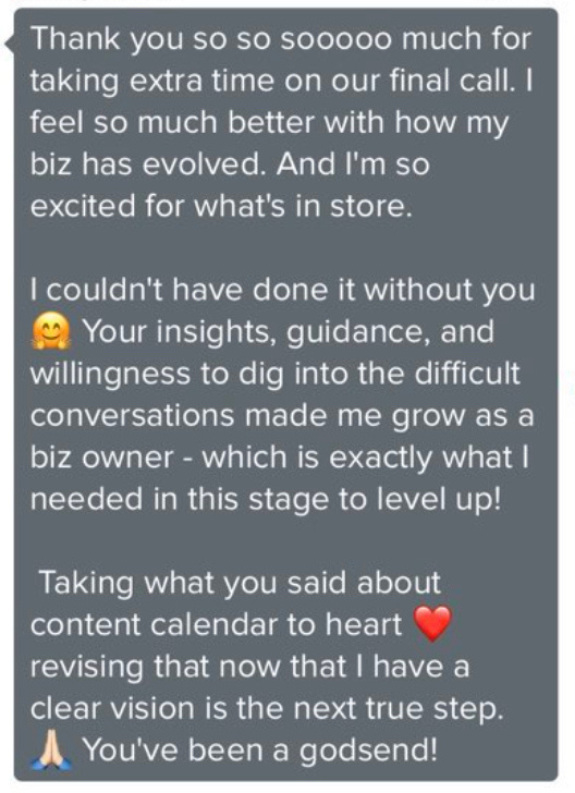 If you've landed on this page, I know it's because you want more out of your business AND your life. You know you are done with that "either/or" thinking that made you think you had to choose between having a successful business OR a life outside of your business. You know you've been binging my content and like what I have to say and the way that I say it, so you know you are ready to work with me in a more personal - and personalized- way.